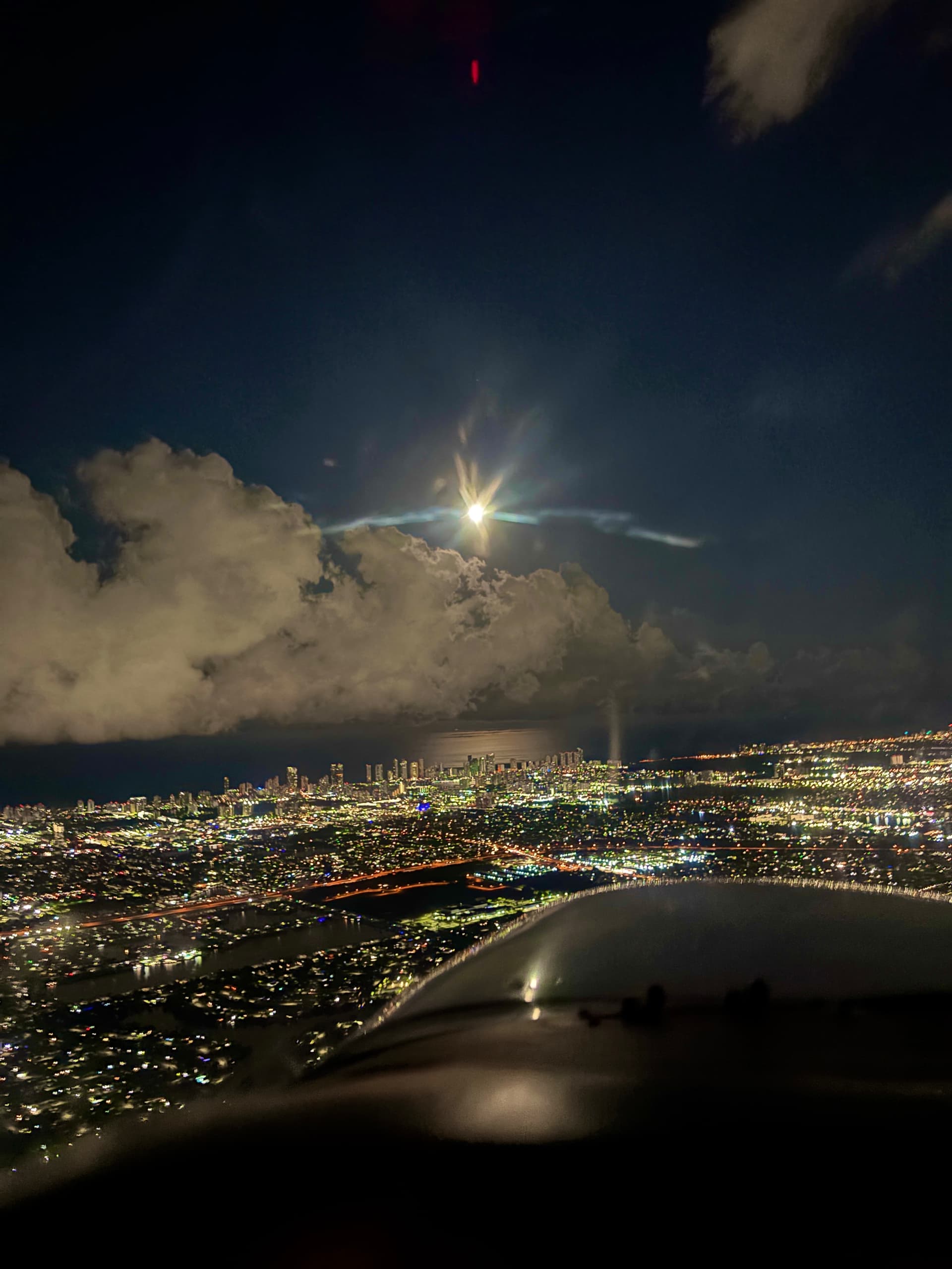 It was a night departure on my flight back home. There wasn’t really much to take photos of out of the window late at night (plus it’s hard to take great night photos on a plane) other than this. The city lights are pretty!